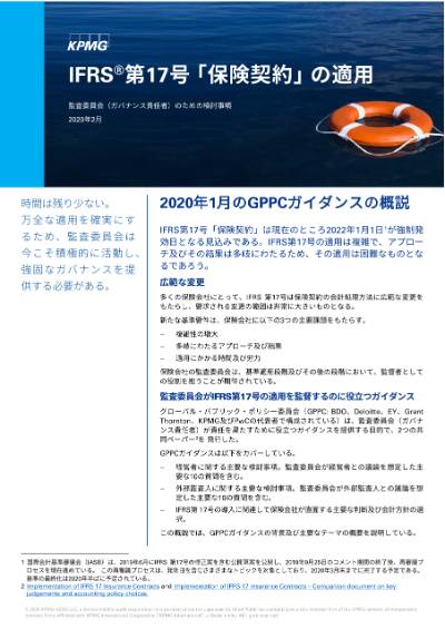 保険会社の経営者及び取締役はGPPCガイダンスの本紙(英語PDF:210kb)と付属資料(英語PDF:329kb)の両方を読み、IFRS第17号適用プロジェクトにおいてどのように考慮するか検討することをお勧めします。また、クイックガイド(PDF:433kb)はダウンロードすることができます。