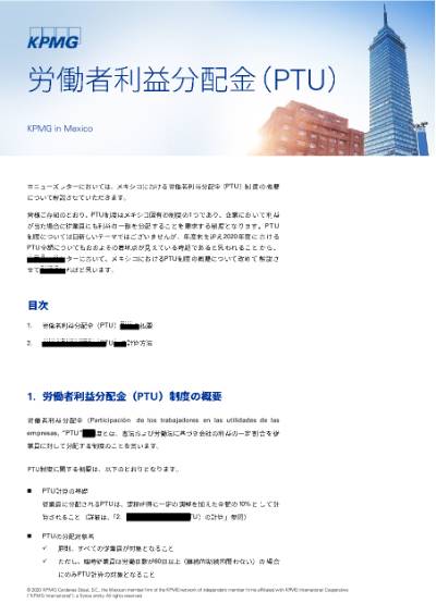 皆様ご存知のとおり、PTU制度はメキシコ固有の制度の1つであり、企業において利益が出た場合に従業員にも利益の一部を分配することを要求する制度となります。PTU制度については目新しいテーマではございませんが、年度末を迎え2020年度におけるPTU金額についてもおおよその着地点が見えている時期であると思われることから、本ニューズレターにおいて、メキシコにおけるPTU制度の概要について改めて解説させていただければと思います。