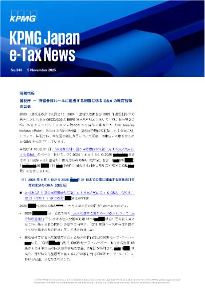 国税庁は10月31日、所得合算ルールに相当する「各対象会計年度の国際最低課税額に対する法人税」について、税務上の取扱いを取りまとめたQ&Aの改訂版(第4版)等を公表しました。