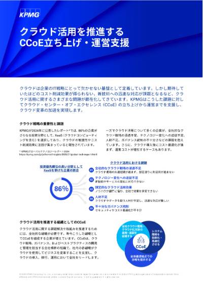KPMGはこうした課題に対してクラウド・センター・オブ・エクセレンス(CCoE)の立ち上げから運営までを支援し、クラウド変革の加速を実現します。
