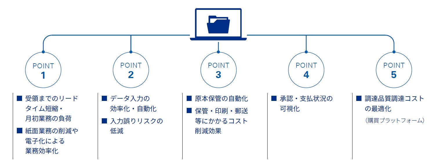購買プラットフォームではさらに、ペーパレス化の対象が見積書や注文書にも広がります。その結果、企業の購買業務全体のガバナンス強化、調達コストの削減・不正防止など、さまざまな効果が見込まれ ます。