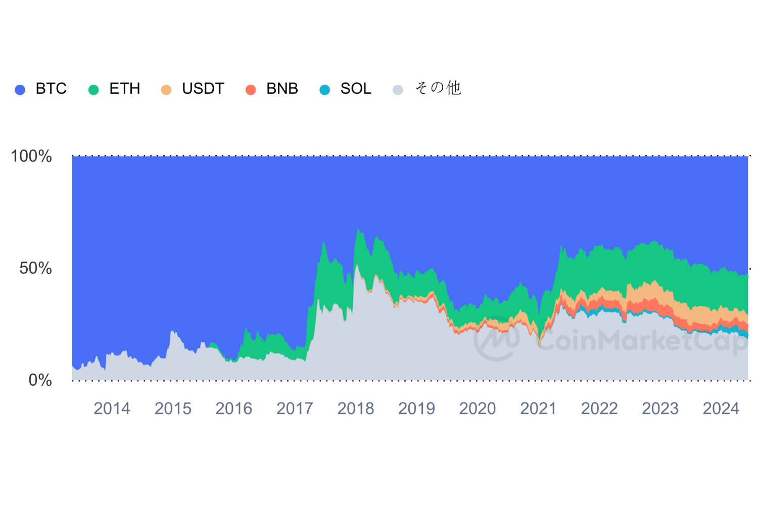 トークン市場全体( 時価総額約363兆 円)の約54%を占めており、歴史的にも30%を下回ったことがありません(図表1参照)。