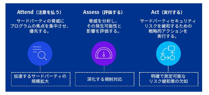 従来のアプローチにより、サードパーティのセキュリティが非常に重要であるとの認識が確立され、リスク評価の基準となる枠組みが構築されましたが、近年では複雑化し、組織内に独立して存在するプロセスも見られるようになりました。