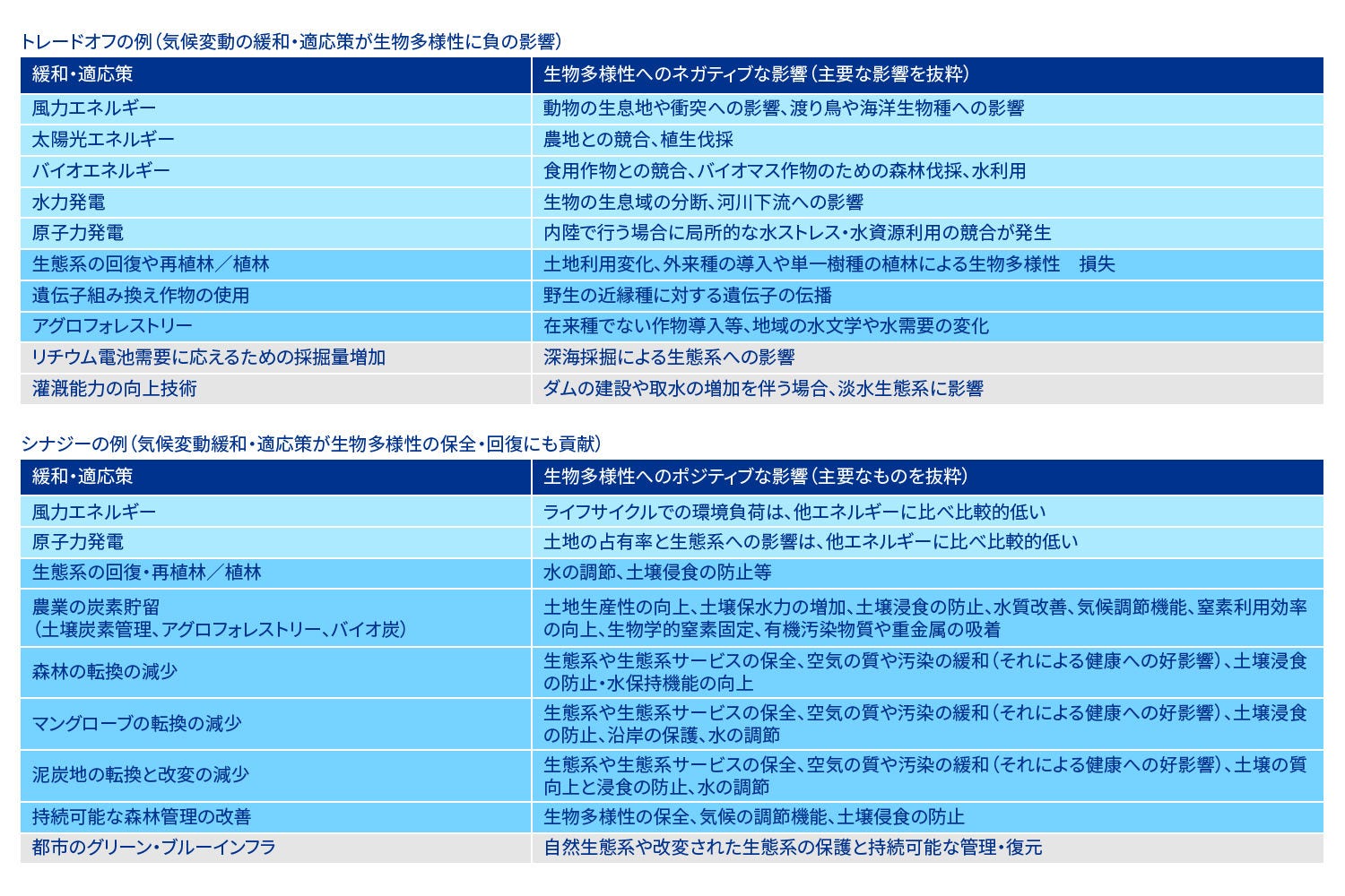 図表2 気候変動と生物多様性のトレードオフ・シナジーの一例