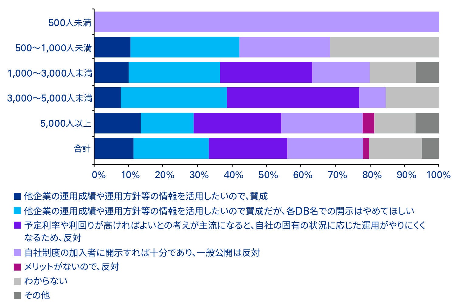 なお、回答企業の属性は、連結従業員数では1,000名以上の企業が83%( うち3,000名以上が59%)を占め、年金資産額の規模では100億円以上の企業が63%(うち500億以上が20%)を占めています。