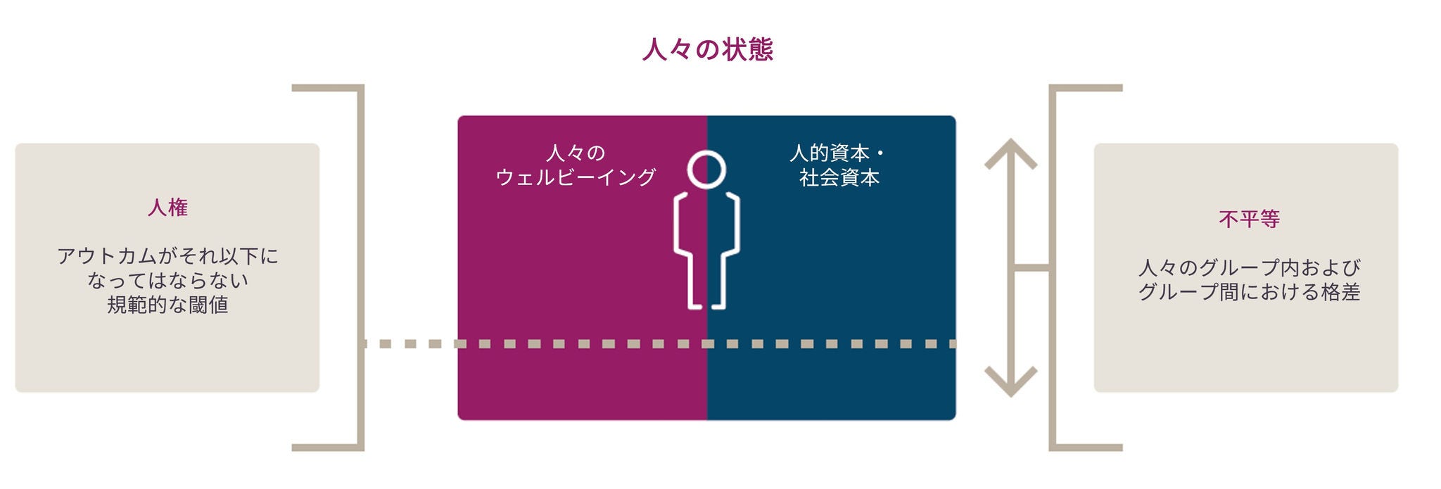 図表2.「人々の状態」の概念図 (ウェルビーイング、人権、人的資本・社会資本と不平等の関係図)