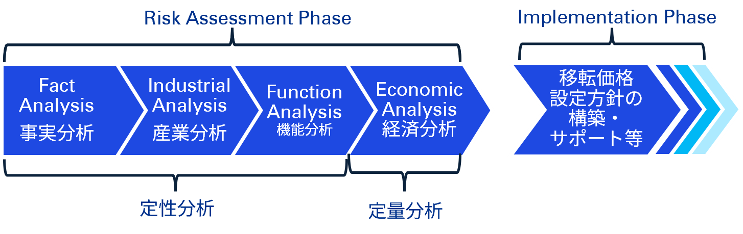 「実行フェーズ」においては、「リスク評価フェーズ」で査定したリスクに基づき、対応策を講じることになります。過去の取引に関しては、移転価格税制上の文書化義務に基づき、保存しておくべき書類の準備に関する支援をします。また、現行の移転価格設定方針を維持すると一定の移転価格リスクが予想される場合には、その方針の変更、適切な移転価格指針に関する助言も併せて行います。