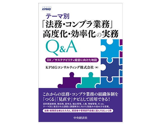 KPMGコンサルティング株式会社(本社:東京都千代田区、代表取締役社長 兼 CEO:宮原 正弘、以下、KPMGコンサルティング)は、書籍『テーマ別「法務・コンプラ業務」高度化・効率化の実務Q&A DX/サステナビリティ経営に向けた地図』を中央経済社より発行しました。