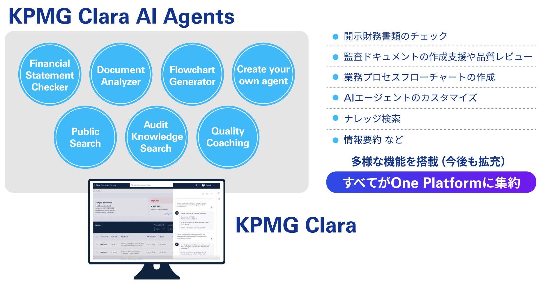 • AIエージェントを監査プラットフォーム「KPMG Clara」に統合し、データ集約型のタスクをAIが担当する