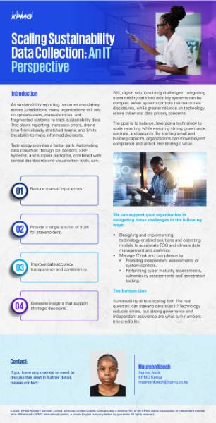 Still, digital solutions bring challenges. Integrating sustainability data into existing systems can be complex.. Weak system controls risk inaccurate disclosures, while greater reliance on technology raises cyber and data privacy concerns.