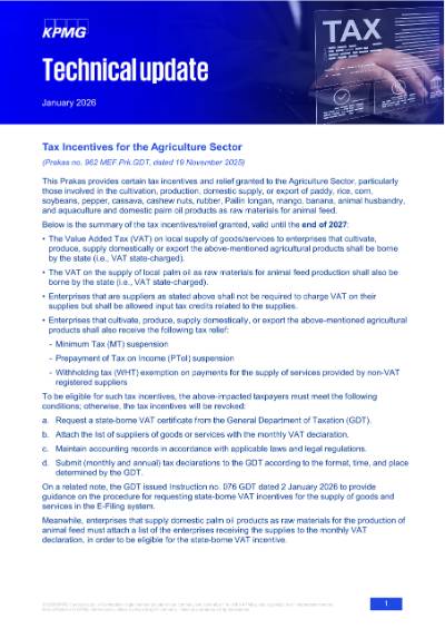On a related note, the GDT issued Instruction no. 076 GDT dated 2 January 2026 to provide guidance on the procedure for requesting state-borne VAT incentives for the supply of goods and services in the E-Filing system.