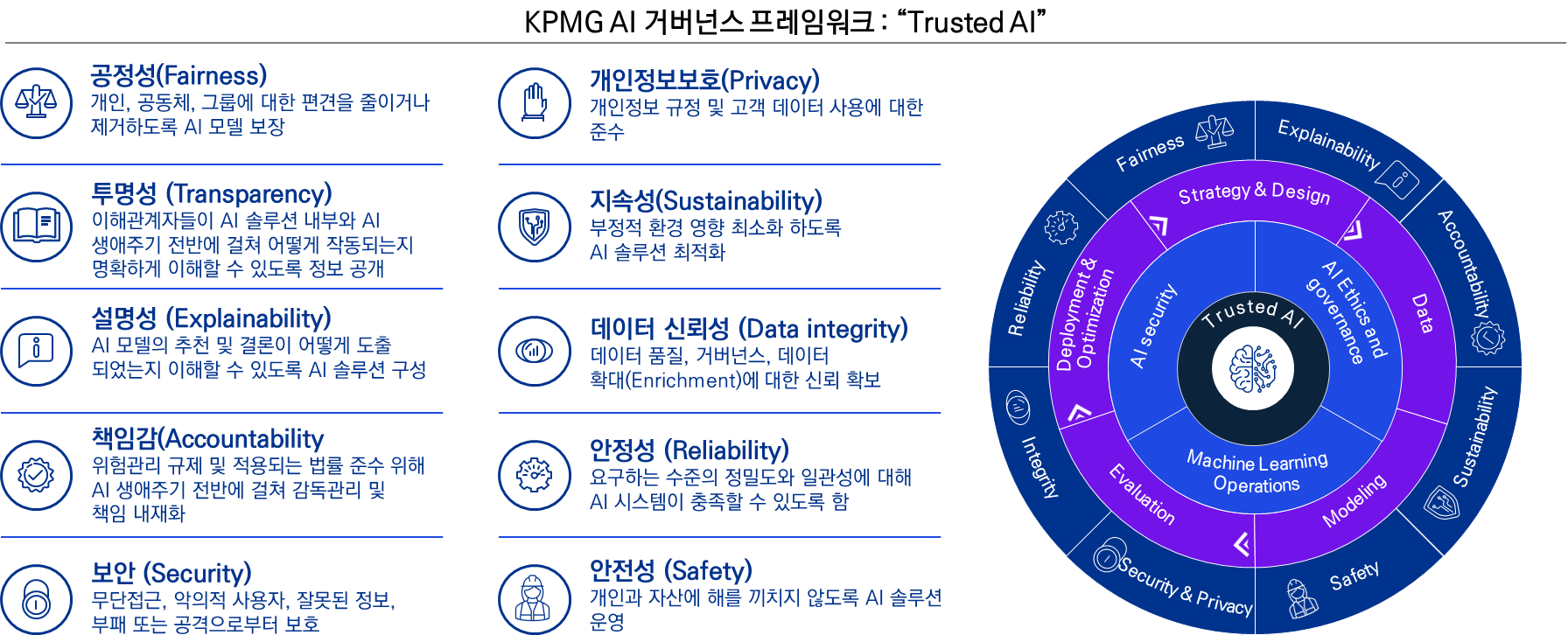 KPMG의 AI 거버넌스는 AI의 설계부터 개발, 운영까지 전 과정에서 발생할 수 있는 다양한 리스크를 체계적으로 관리할 수 있도록 지원합니다.