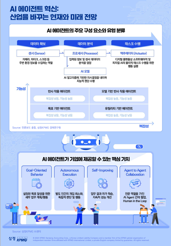 AI는 산업 현장에서도 빠르게 영역을 확장하며 기업의 새로운 혁신 창출 요소로 주목받고 있습니다. AI가 인간의 조력자로서 문제를 판단하는 시대를 맞이했습니다. 특히 인간과 함께 문제를 해결하기 위한 작업을 실제 수행할 수 있는 역량을 갖춘 ‘AI 에이전트’ 기술은 차세대 AI 솔루션으로 부상했습니다. AI 에이전트는 스스로 계획·실행하며 인간뿐 아니라 AI 간 협업하는 ‘실행자’로 진화 중입니다.