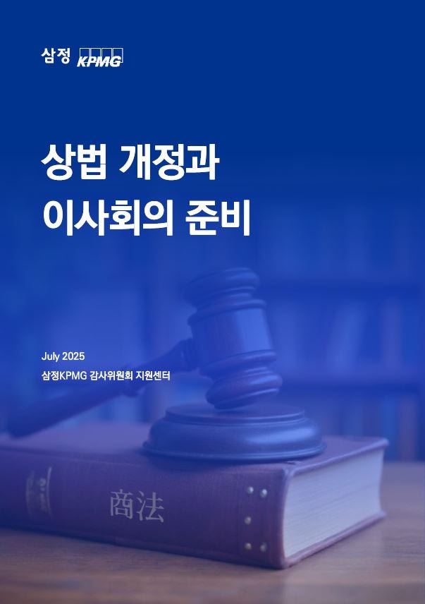 삼정KPMG는 개정 상법의 핵심 내용과 이사회 및 감사위원회의 대응 과제를 다룬 'ACI 이슈 리포트: 상법 개정과 이사회의 준비'를 발간했다고 31일 밝혔다.