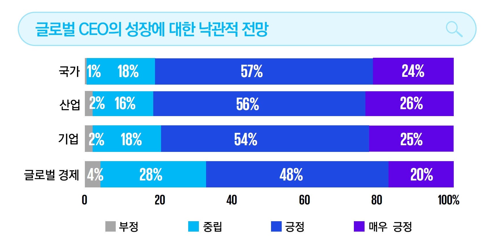 글로벌 CEO의 세계 경제에 대한 낙관적 전망이 최근 5년 내 최저 수준으로 떨어졌으나 인공지능(AI)·인재 확보·리스크 회복탄력성 강화 등 핵심 분야에 대한 전략적 투자 의지는 커지고 있다.