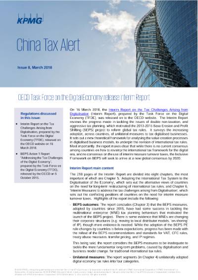 The issues dealt with in TFDE Interim Report are highly complex and KPMG China will issue further, more detailed publications in the near future.