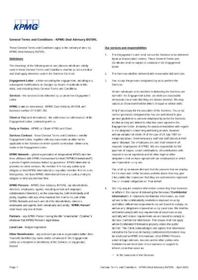 These General Terms and Conditions apply to the delivery of services by the referenced service lines - we advise you to download and save the relevant General Terms and Conditions together with the Engagement letter in your own systems.
