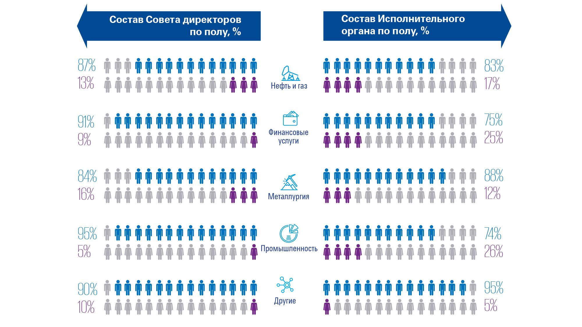 В ходе исследования также был проведен анализ состава совета директоров и исполнительного органа компаний по гендерному признаку.