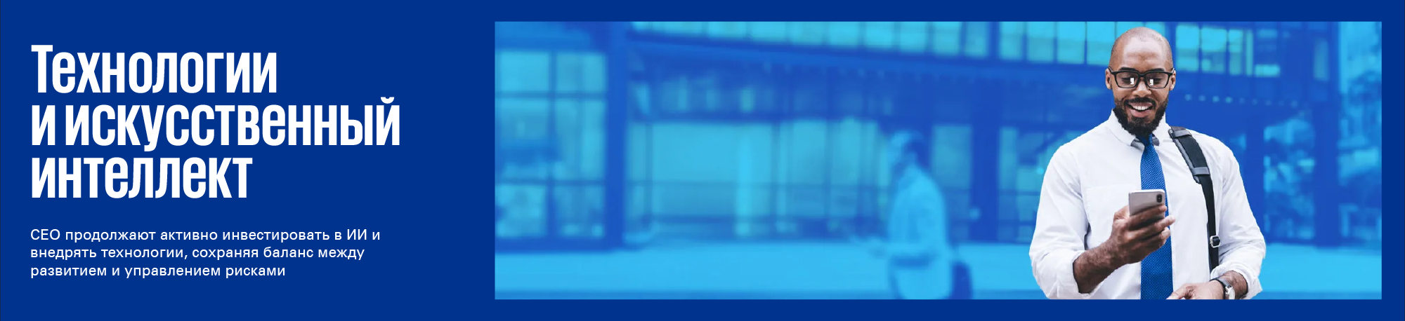 Несмотря на то, что уровень уверенности в состоянии мировой экономики снизился до показателей времён пандемии, 79% генеральных директоров оптимистично оценивают перспективы собственных компаний. Для поддержания и стимулирования дальнейшего роста они делают ставку на два ключевых направления — инвестиции в искусственный интеллект (71%) и удержание и переподготовку перспективных сотрудников (71%).