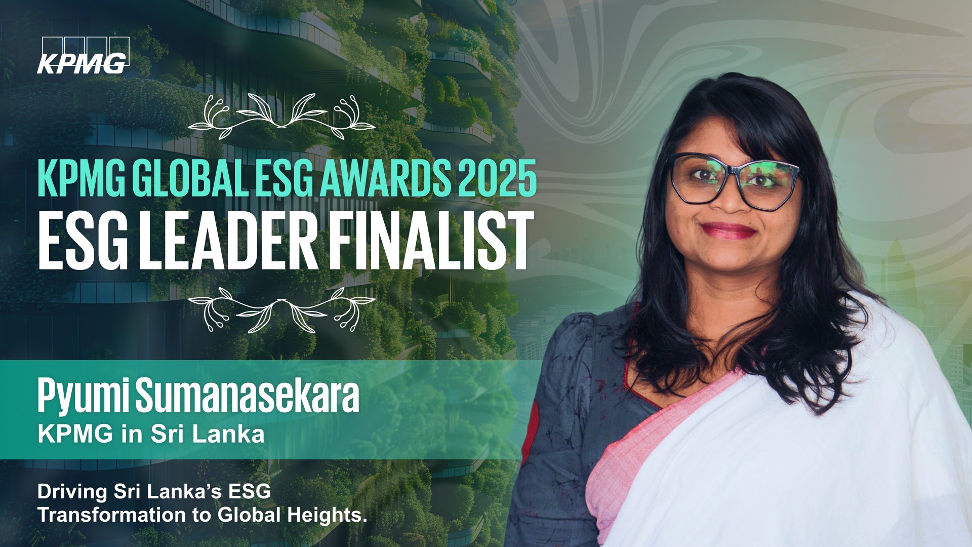 We’re proud to celebrate Pyumi Sumanasekara, Partner – Sustainability, ESG, Family Business and Board Governance, Global Assurance, named one of only five Global Finalists at the 2025 KPMG Global ESG Awards under the category ‘ESG Leader’.
