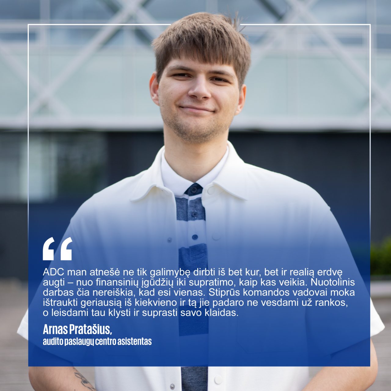 Čia kiekvienas gali pradėti savo karjerą, būti savimi ir jaustis svarbia komandos dalimi. Mūsų stipri komandos dvasia leidžia mokytis iš skirtingų patirčių, dalintis žiniomis ir kartu kurti vertę reikšminguose audito projektuose.