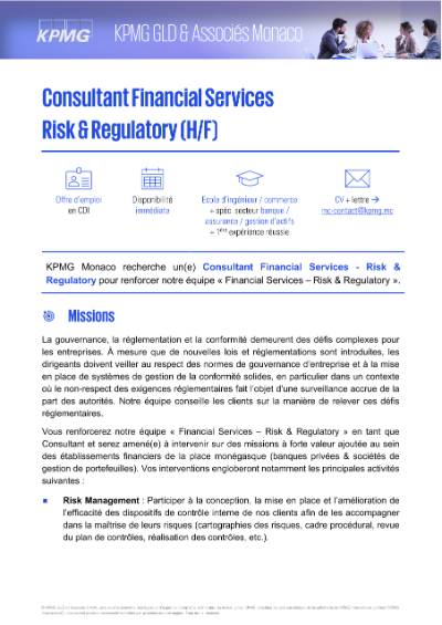 - Envoyer CV et lettre de motivation (Word ou PDF) par e-mail à mc-contact@kpmg.mc