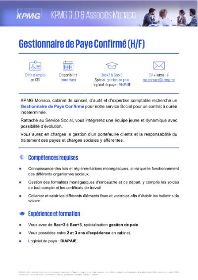 - Envoyer CV et lettre de motivation (Word ou PDF) par e-mail à mc-contact@kpmg.mc