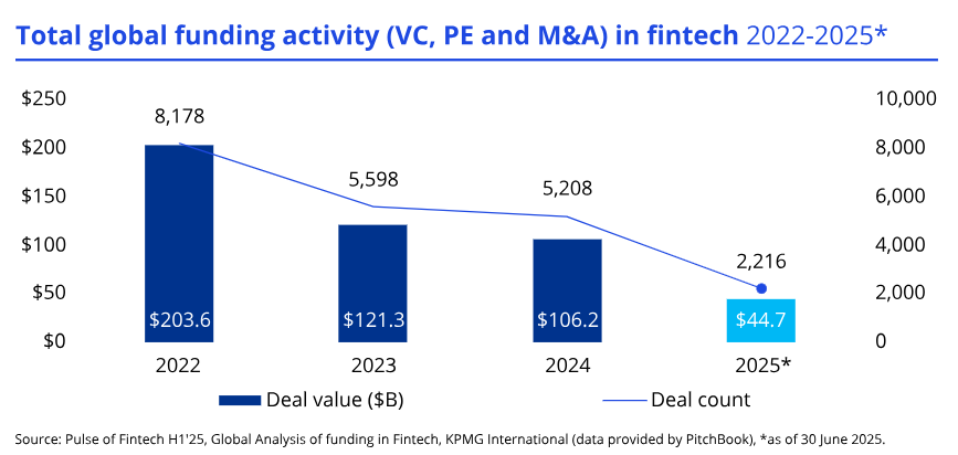 - A growing focus on AI-enablement of fintechs — either AI native or AI transformation of existing fintech platforms.