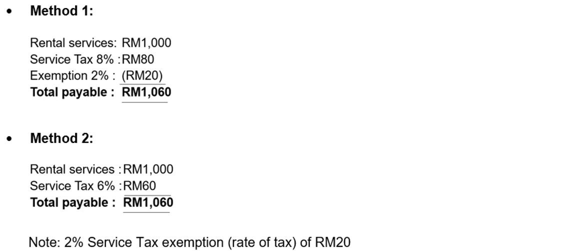2% Service Tax exemption on Rental or Leasing services - Procedures for issuing invoices and SST-02 Returns reporting requirements