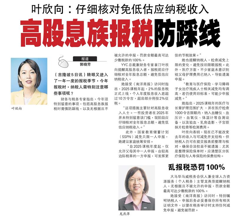In this interview, Long Yen Ping, Head of Global Mobility Services at KPMG in Malaysia, highlighted that unsupported or disallowed tax claims can incur fines of up to 100% of underpaid taxes. She also emphasized that keeping proper records allows taxpayers to maximize available reliefs and ensure compliance.