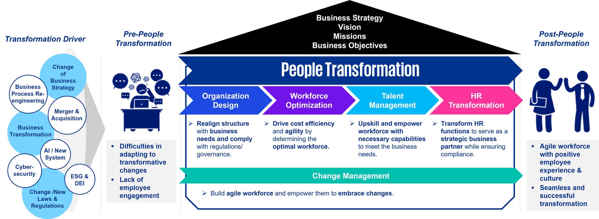 As organizations work through the talent revolution resulting from technological and AI advancements, geopolitical tensions, climate change, and other changes which have led to profound shifts in the global business landscape, people transformation remains crucial to help organizations adapt and excel in this new world.