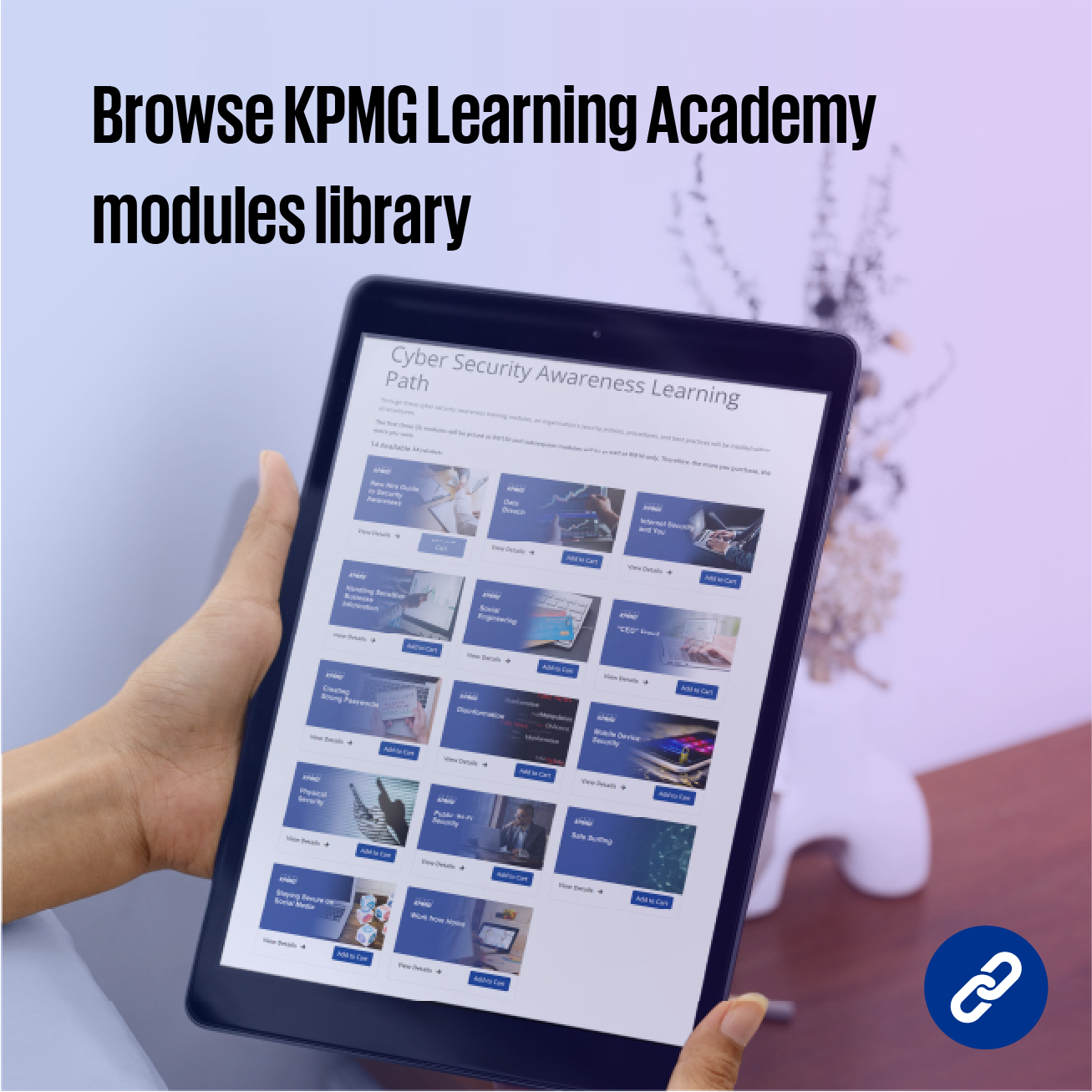 Building on our rich experience of working across a diverse spectrum of clients, solutions and industries, the KPMG Learning Academy team works with organizations to develop customizable e-Learning modules to solve their respective business needs and will be effectively placed within the organization’s learning platform to be deployed throughout the workforce when required.