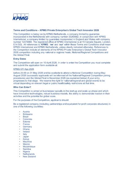 A: KPMG will be promoting the competition in the run up and after the event. By entering the competition, you agree that your company name and logo may be promoted in relation to the competition.