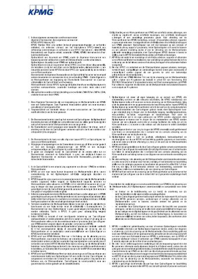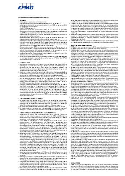Voor de bedrijfsonderdelen van KPMG Nederland die diensten verlenen aan klanten, of die diensten en/of producten afnemen van leveranciers, hebben we algemene voorwaarden opgesteld. Deze voorwaarden vormen de juridische basis van onze dienstverlening. Zo laten we cliënten en leveranciers zien wat ze van ons mogen verwachten en voorkomen we onduidelijkheid over de samenwerking.