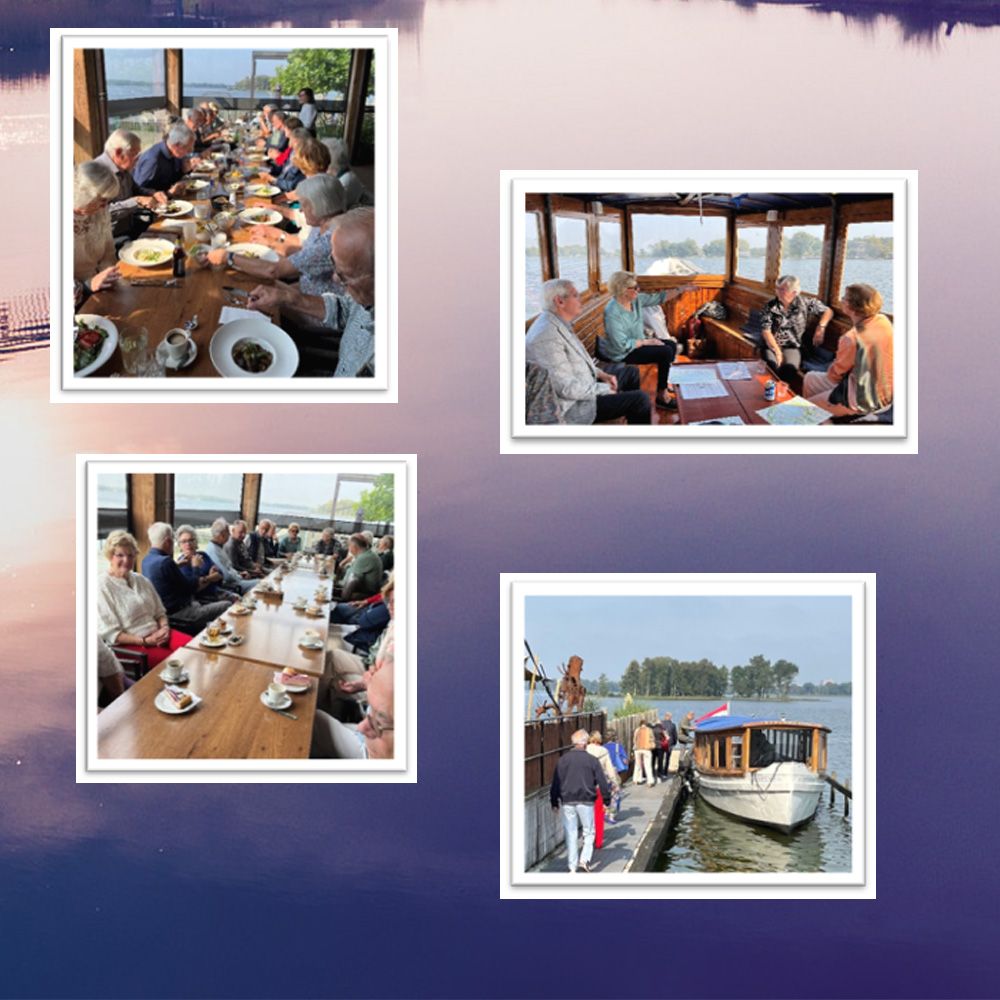 Op die mooie zonnige herfstdag met 23 graden en een lekker briesje was het heerlijk varen met de tot salonboot omgebouwde Neptunus, die oorspronkelijk gebouwd is rond de jaren 1920. Maar voordat we gingen varen kwamen maar liefst 22 deelnemers op de uitnodiging af en werd er eerst genoten van koffie of thee met gebak en werd er gezellig bijgepraat en herinneringen opgehaald. Wij werden welkom geheten door voorzitter Bert Hoorn, die blij was met de opkomst, maar ook memoreerde dat er toch een aantal personen ontbraken door vakantie of ziekte en dat door het overlijden van de echtgenote van Doeke de Vries er ook twee leden ontbraken van het eerste uur van de Vereniging.