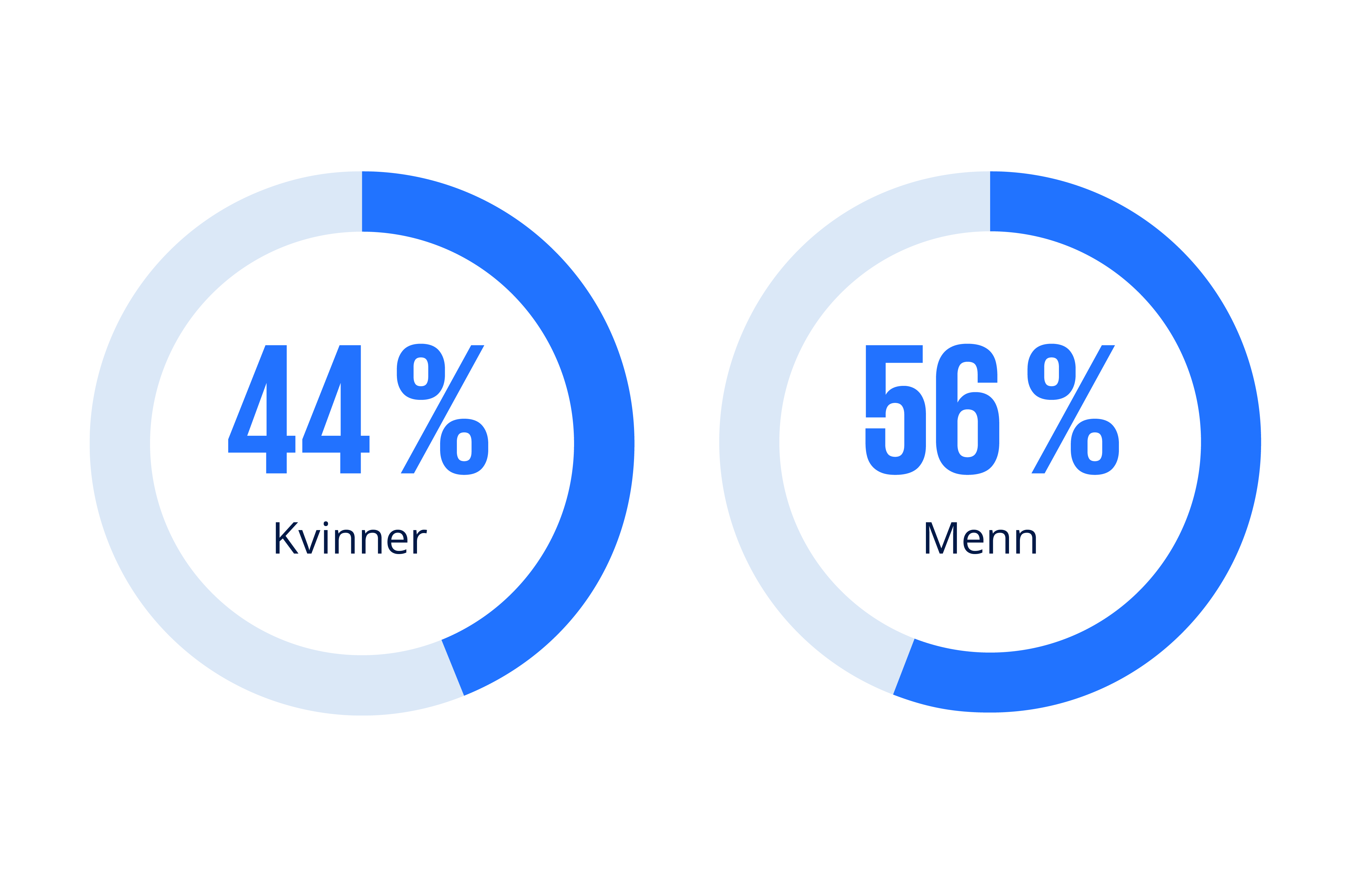 Kjønnsbalanse på minst 40/60 på alle stillingsnivåer.