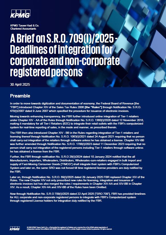 The FBR then also introduced Chapter XIV - BB in the Rules regarding integration of Tier-1 retailers and licensing thereof through Notification No. S.R.O. 1063(I)/2021 dated 24 August 2021 requiring that no person shall carry out integration of the retailers through software unless he has obtained a license.