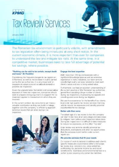 The Romanian tax environment is particularly volatile, with amendments to tax legislation often being introduced at very short notice. In the current economic climate, it is more important than ever for companies to understand the law and mitigate tax risks. At the same time, in a competitive market, businesses need to take full advantage of potential tax savings, where possible.