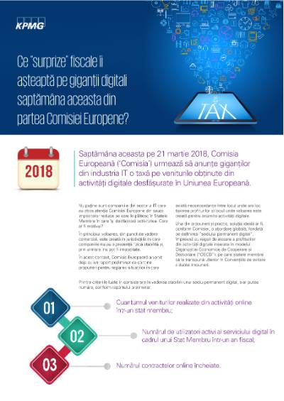 Saptămâna aceasta pe 21 martie 2018, Comisia Europeană (‘Comisia’) urmează să anunțe giganților din industria IT o taxă pe veniturile obținute din activități digitale desfășurate în Uniunea Europeană.