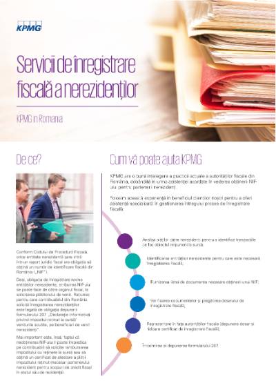 KPMG are o bună înțelegere a practicii actuale a autorităților fiscale din România, dobândită în urma asistenței acordate în vederea obținerii NIFului pentru partenerii nerezidenți.