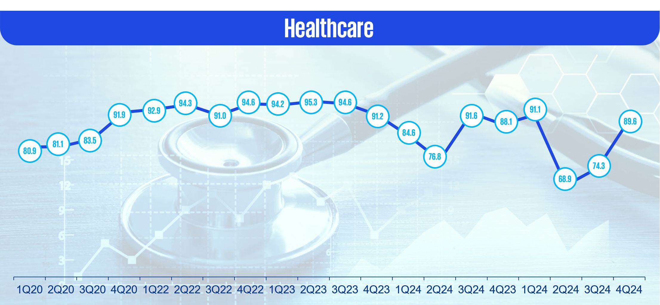 - Healthcare sector showed tremendous recovery, with its FPI score rising from 74.3 in 3Q24 to 89.6 in 4Q24. Public health spending is expected to outpace private health spending with a CAGR of 6.2% from 2025 to 2029.