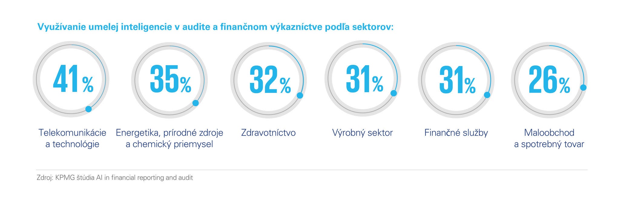 Zatiaľ čo v súčasnosti, podľa výsledkov štúdie KPMG AI in financial reporting and audit: Navigating the new era, testujú alebo využívajú pri finančnom výkazníctve umelú inteligenciu takmer tri štvrtiny firiem, o tri roky by sa malo toto číslo vyšplhať až na 99 %.