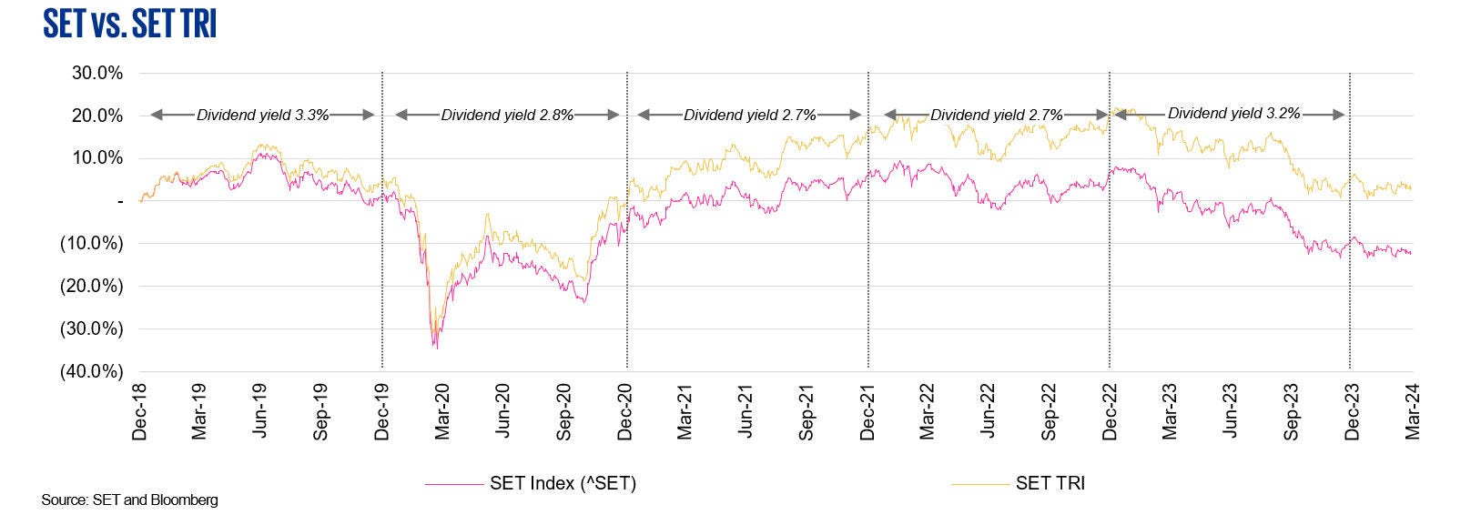 - Annual dividend yields are based on dividend yields from Bloomberg.