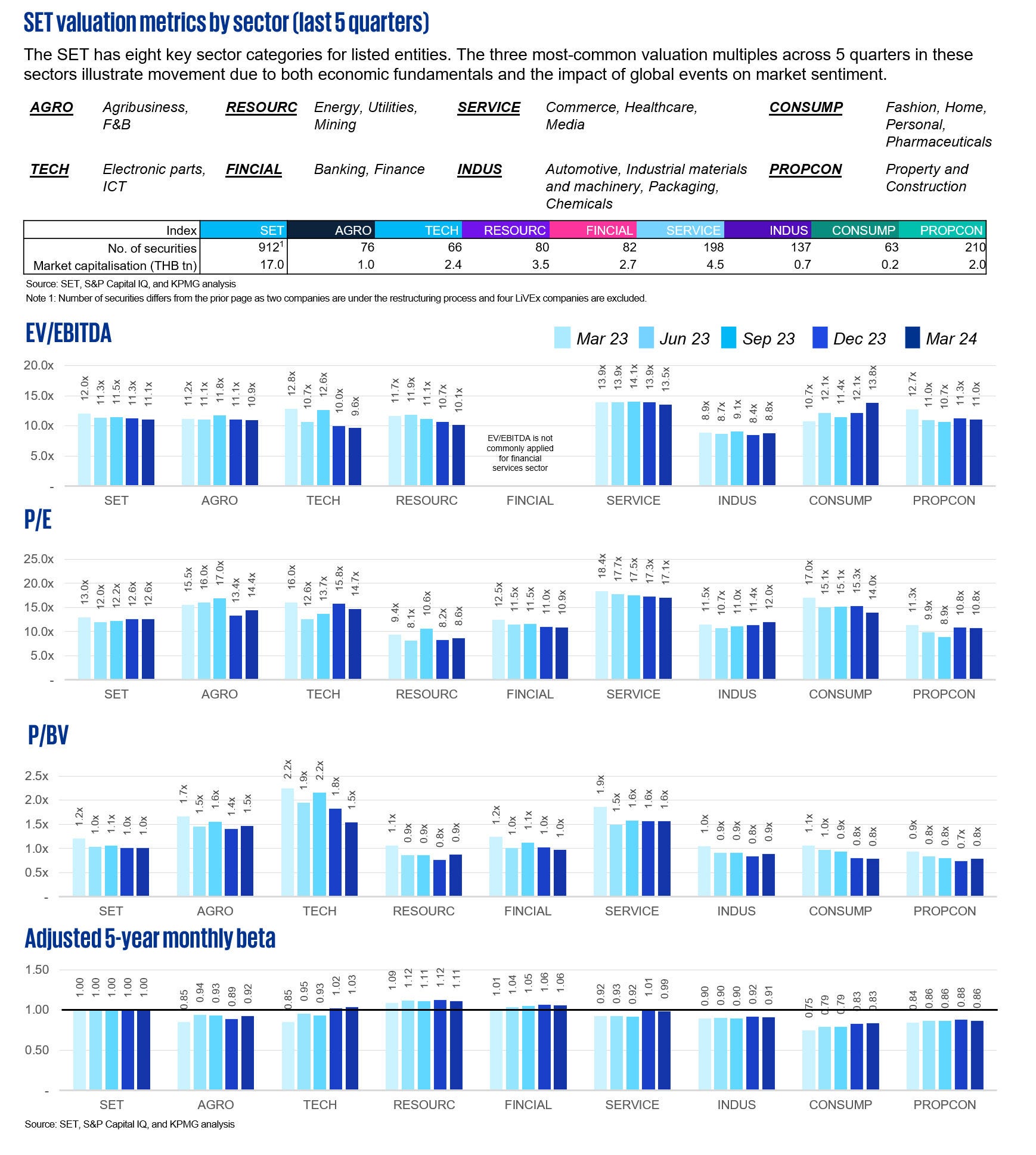 SET valuation metrics by sector (last 5 quarters)