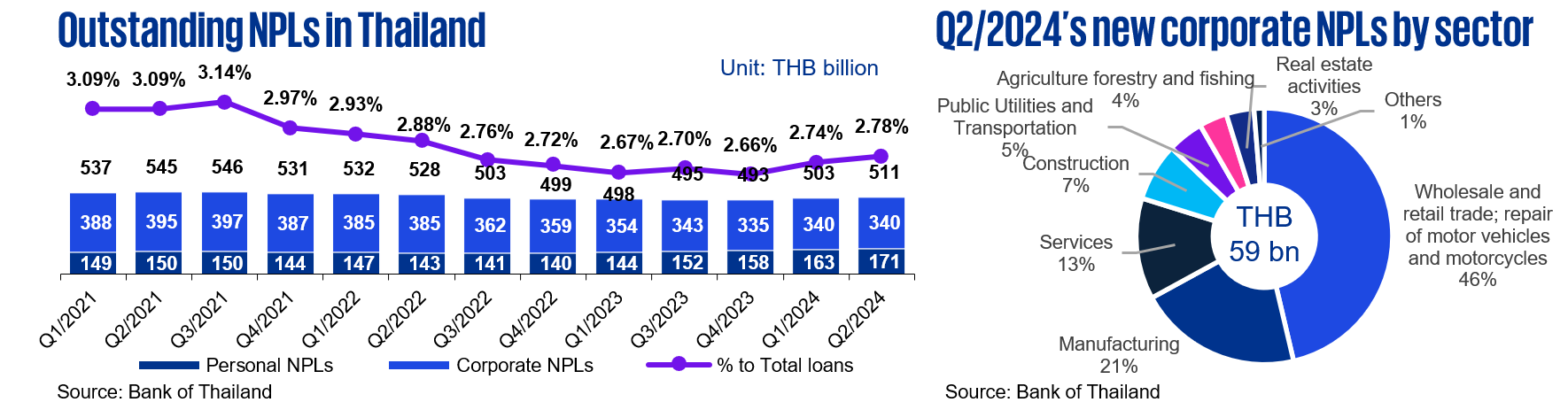 In the second quarter of 2024, the Bank of Thailand (BOT) revised its GDP growth projection for the year to 2.6%, up from the previous estimate of 2.5% (2.0%-3.0% range). This adjustment is largely attributed to the significant 26.3% increase in the number of tourists, a clear indicator of the nation's recovering momentum. With approximately 35.5 million tourists expected this year, bolstered by the recent extension of the visa-free policy, the sector is experiencing robust growth. Additionally, private consumption and investment are anticipated to rise, along with an increase in exports driven by stronger global demand.
