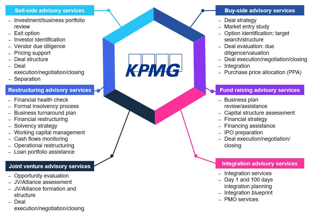 "KPMG provides a full range of valuation services for all sell-side, buy-side, tax restructuring, fund raising, and joint venture transactions."