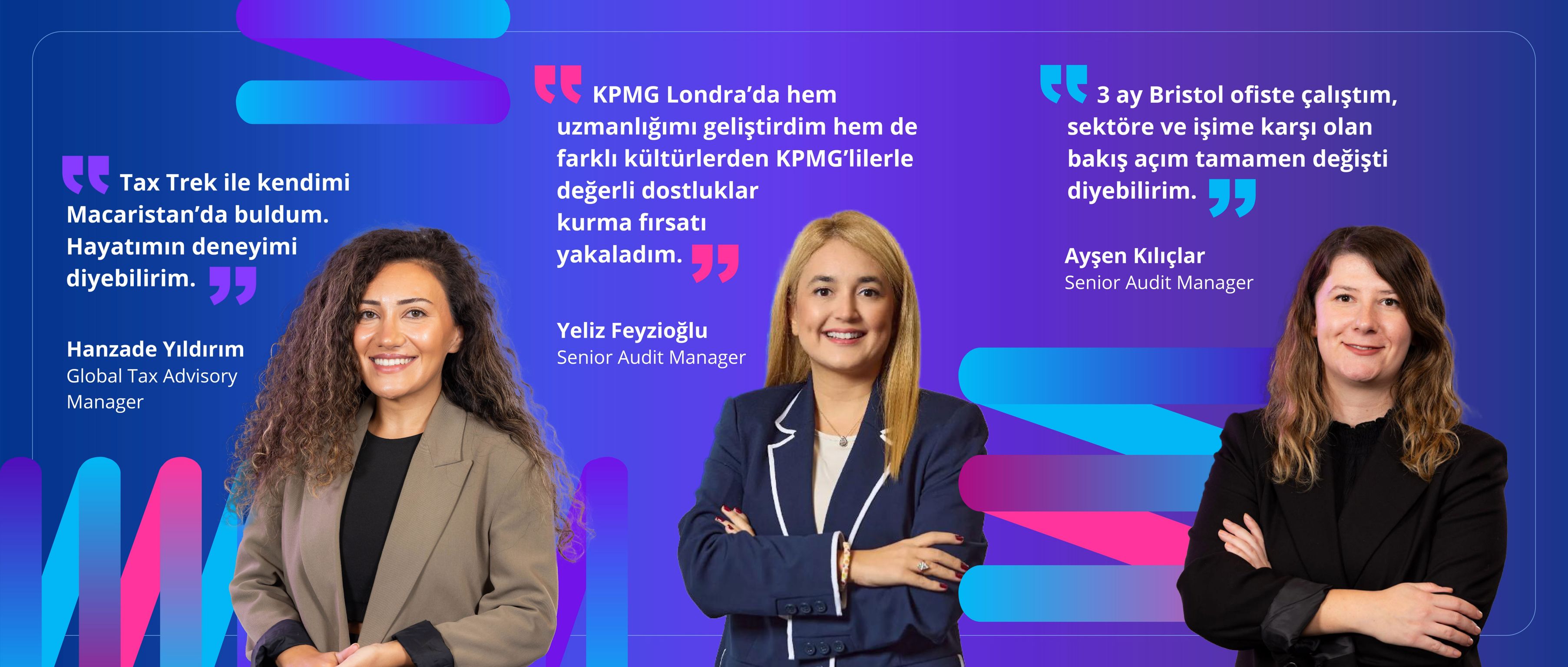Tax Trek, vergi alanında kariyerine hız katmak isteyen Kıdemli Uzmanlar, Müdür Yardımcıları ve yeni Müdürler için tasarlanmış bir global gelişim programıdır. Arkadaşlarımız yurt dışındaki KPMG ofislerinde projelere katılarak, global bir bakış açısı kazanıyor ve fark yaratıyorlar.
