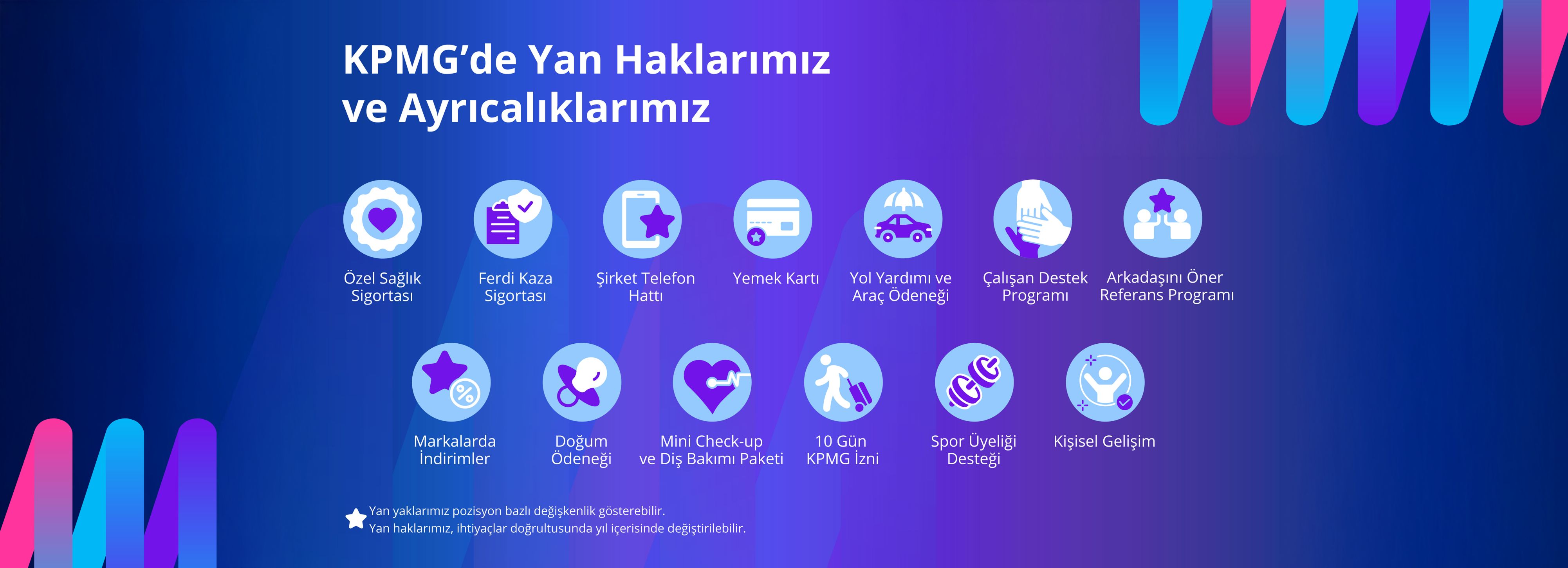 ➥ KPMG'li olmak sadece bir iş değil, ayrıcalıklı bir deneyim! Sürekli değişen yan haklarımızla hayatımızı kolaylaştırıyor, her günü daha renkli hale getiriyoruz.