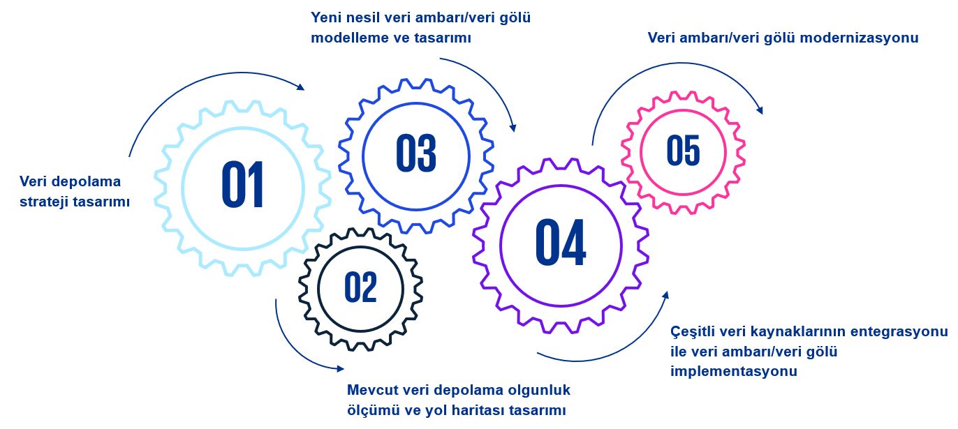 Yeni nesil veri depolama yaklaşımlarına ve mimarilerine uygun şekilde implemente edilen veri gölleri ve veri ambarları sayesinde veri altyapılarını sadeleştirmek, günümüz koşulları için son derece önemli bir hale gelmiştir. Böylelikle kaliteli, tanımı açık, güvenli ve merkezi şekilde toplanıp depolanan verilerinize kolayca erişebilir, bu verileri raporlama ve ileri analitik modelleme çalışmalarında kullanarak veriye dayalı iş kararları verebilirsiniz.