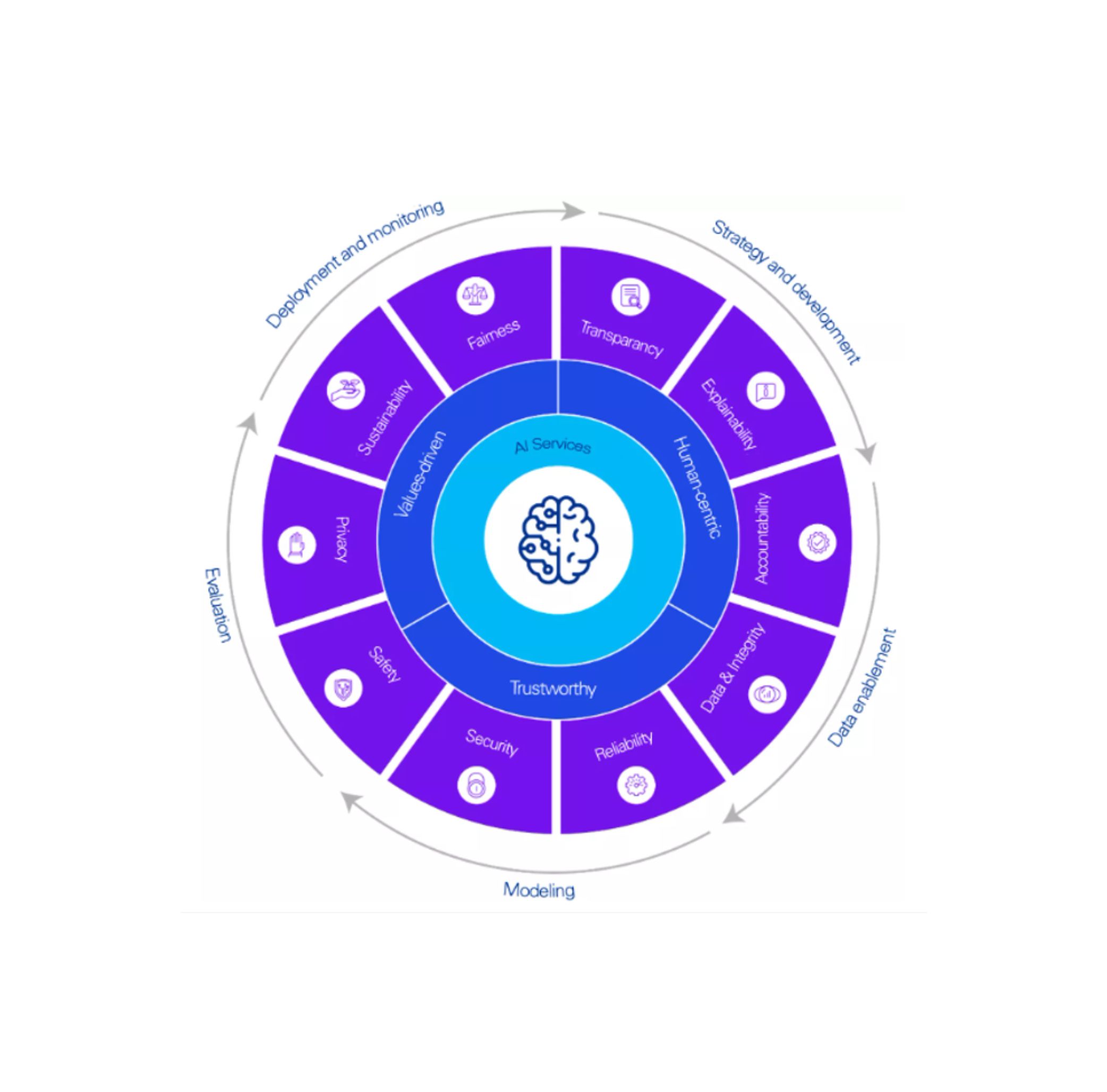 KPMG Yapay Zeka Hizmetleri, yapay zekayı sorumlu ve etik bir şekilde tasarlamak, oluşturmak ve kullanmak için stratejik yaklaşımımız ve çerçevemizdir. İlkelerimize ve yapay zekayı yaşam döngüsü boyunca nasıl kullandığımızı yönlendiren etik değerlerimize bağlı kalacağız.